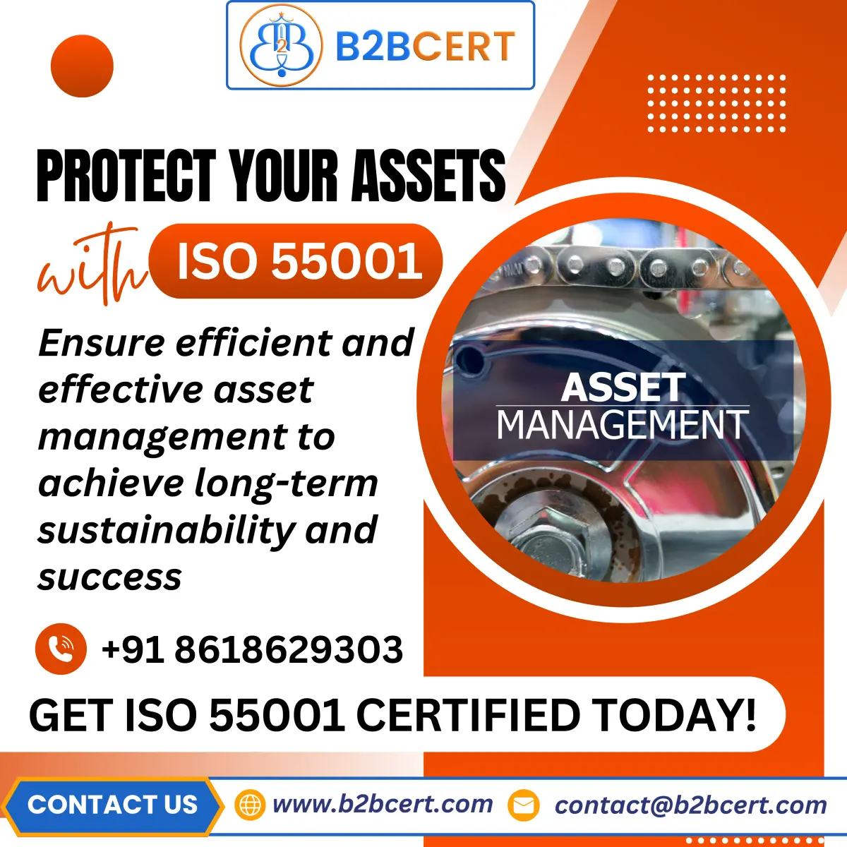 Struggling with poor asset management, unexpected equipment failures, and rising maintenance costs? Many organizations in Bangalore face challenges managing assets efficiently without a structured system. Without proper asset management practices, businesses may experience operational disruptions, financial losses, and reduced productivity. ISO 55001 Certification provides the solution. ISO 55001 is an internationally recognized Asset Management System standard that helps organizations manage assets effectively throughout their lifecycle, improve performance, and reduce risks. B2BCERT offers professional ISO 55001 Certification services in Bangalore with complete support including gap analysis, documentation, implementation guidance, and audit preparation. Our experts help organizations achieve certification smoothly. With ISO 55001 Certification, your business can optimize asset performance, reduce costs, improve risk management, and enhance long-term value. Partner with B2BCERT today to achieve ISO 55001 Certification in Bangalore and strengthen your asset management system. ISO 55001 Certification in Bangalore